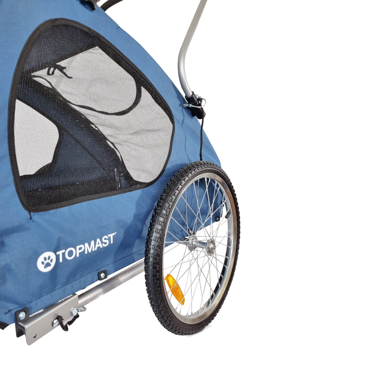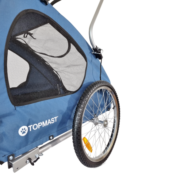 Ontdek de ultieme fietservaring voor jou en je grote hond met de Topmast Hondenfietskar Streamline in het opvallende blauw. Ontworpen met liefde voor detail en functionaliteit, biedt deze fietskar alle comfort en veiligheid die je hond verdient tijdens avonturen op de fiets.