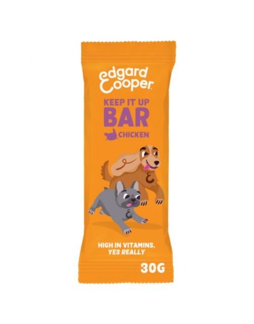 Keep It Up met onze Reep met kip- een natuurlijke oppepper boordevol vitamines voor honden van alle leeftijden. Deze snack op basis van een recept zonder granen ondersteunt het welzijn van je huisdier en is de ideale energiebooster tijdens elk avontuur.